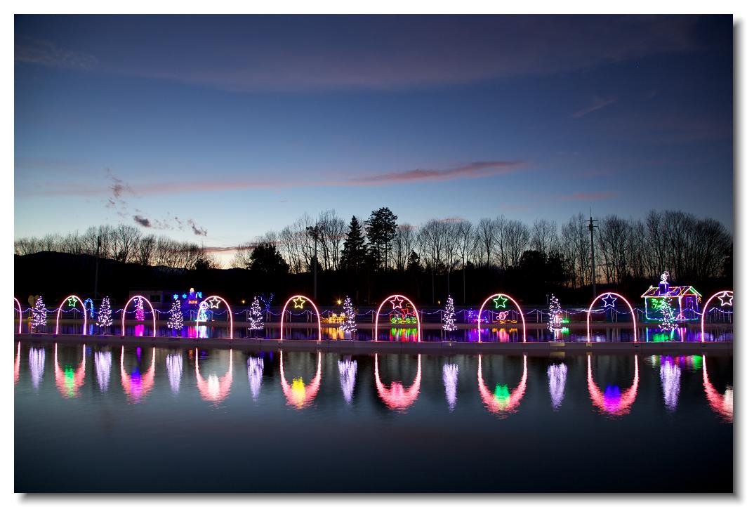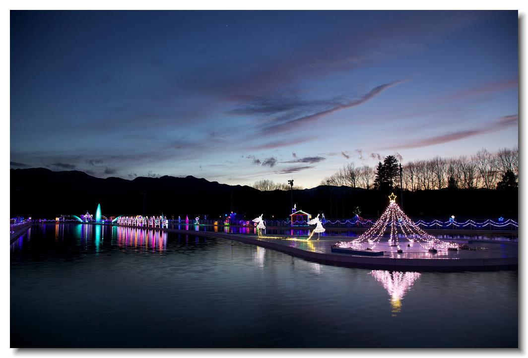 秩父ミューズパーク・イルミネーション EOS 5D Mark II 24〜105mm ※2007年〜2010年冬期に秩父ミューズパーク内のプールにて行われていたイルミネーションです。奥秩父の山々に映える夕日やプールに映るイルミネーションが美しく、最高のロケーションでした。2010〜2011は街中に舞台が映り、だいぶ趣が変わりました。
