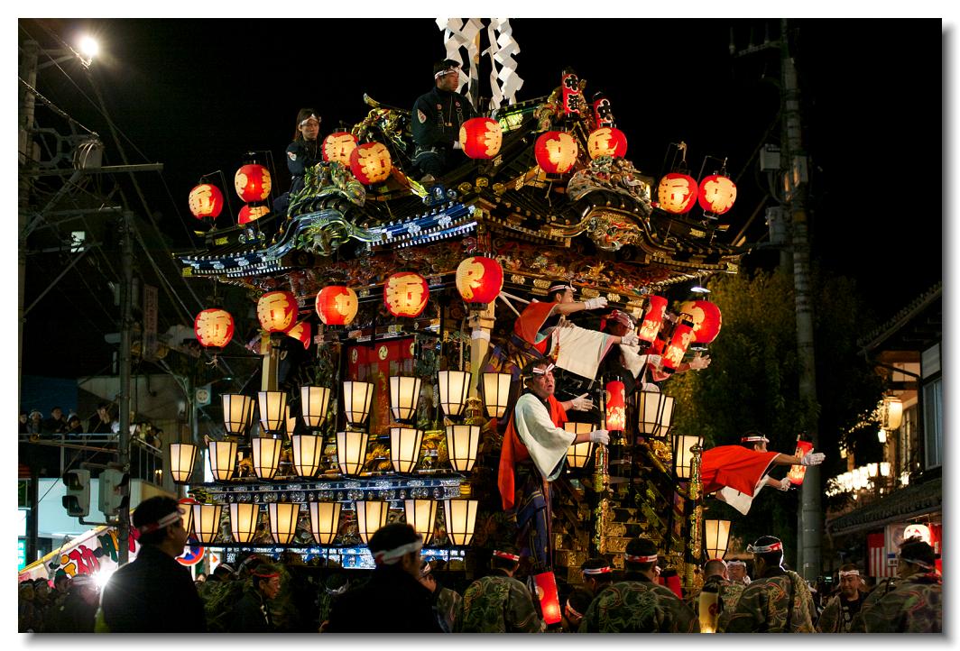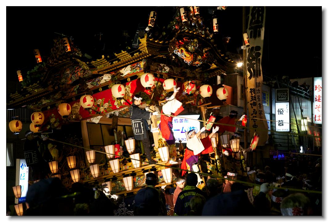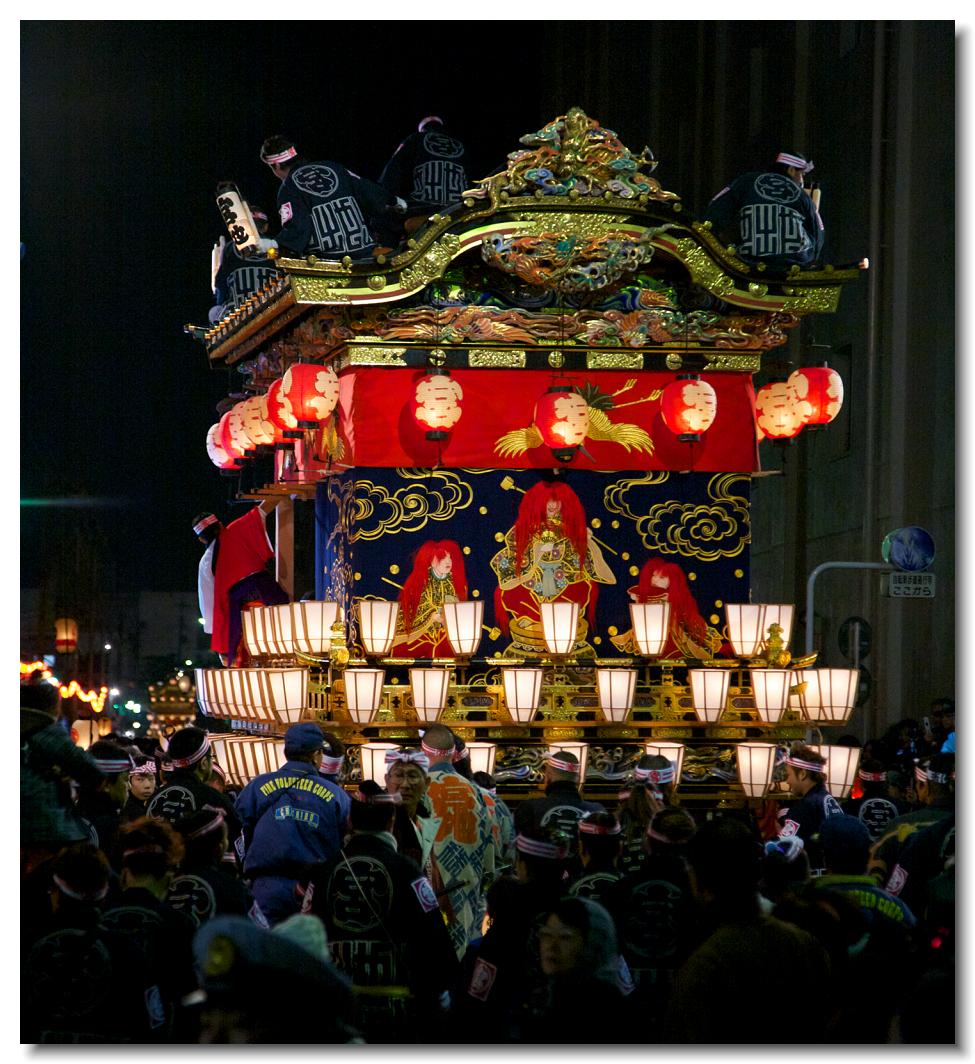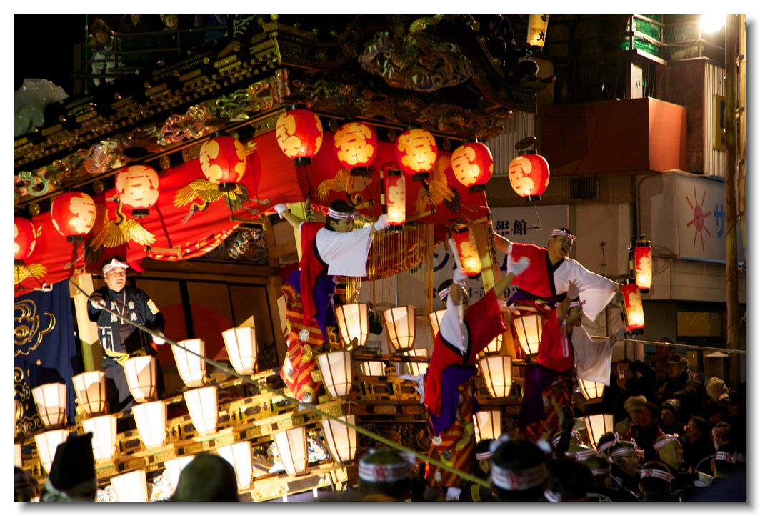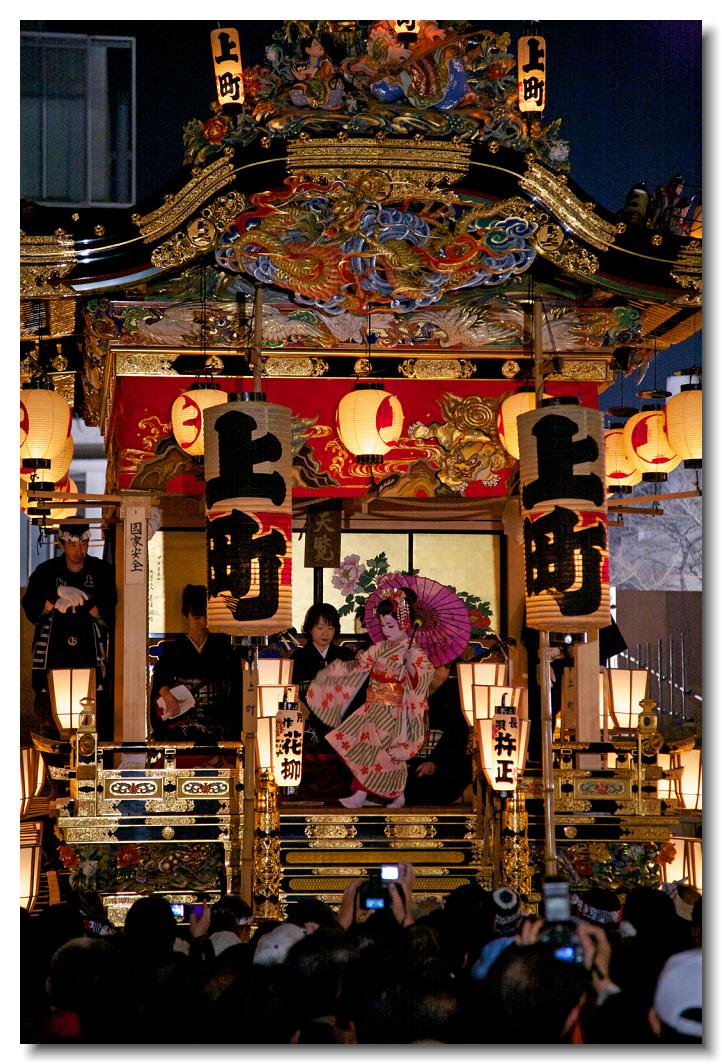 宵マチ EOS 5D 70〜200mm ※屋台の上では「曳き踊り」(国指定重要無形民俗文化財)が披露されます。日本舞踊の代表的な舞が中心です。写真は中町屋台の「藤娘」です。