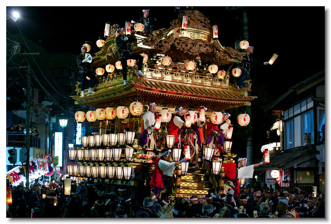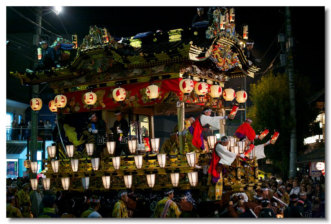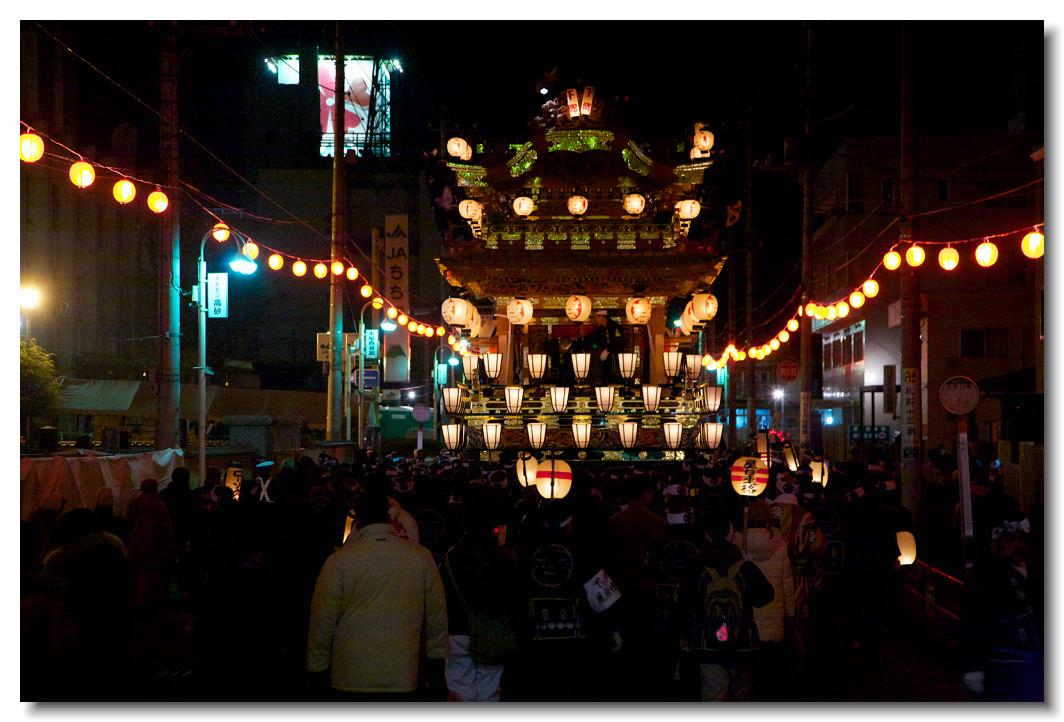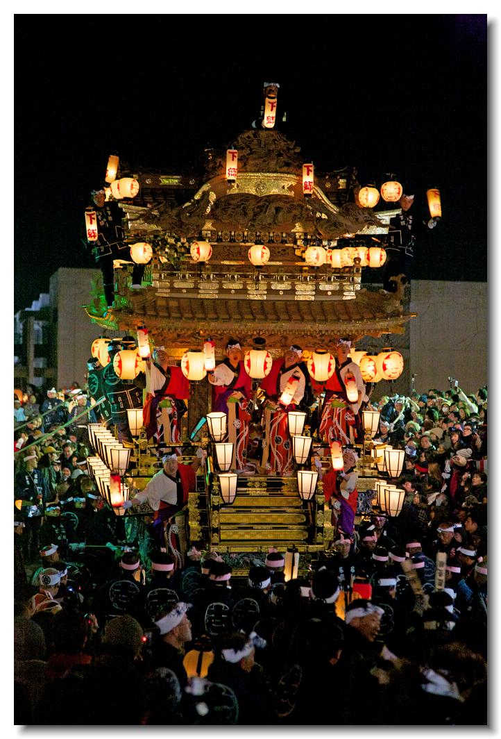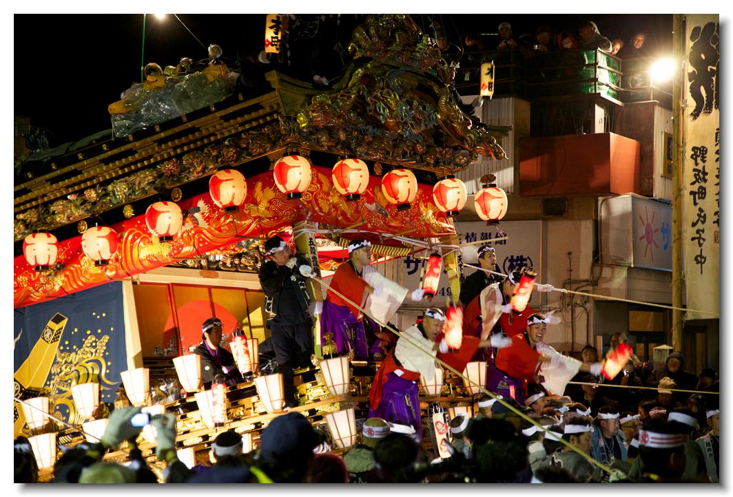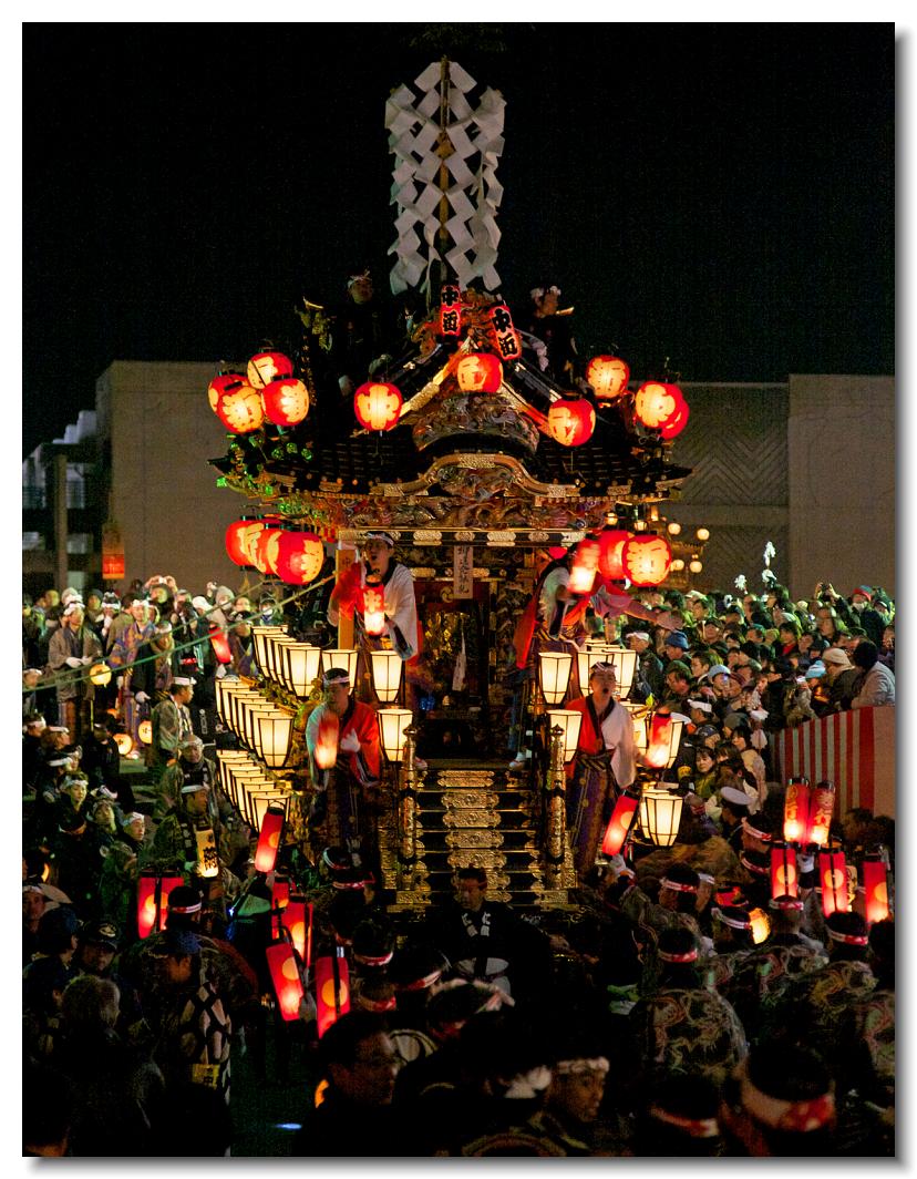 宵マチ EOS 5D 70〜200mm ※屋台の上では「曳き踊り」(国指定重要無形民俗文化財)が披露されます。日本舞踊の代表的な舞が中心です。写真は中町屋台の「藤娘」です。