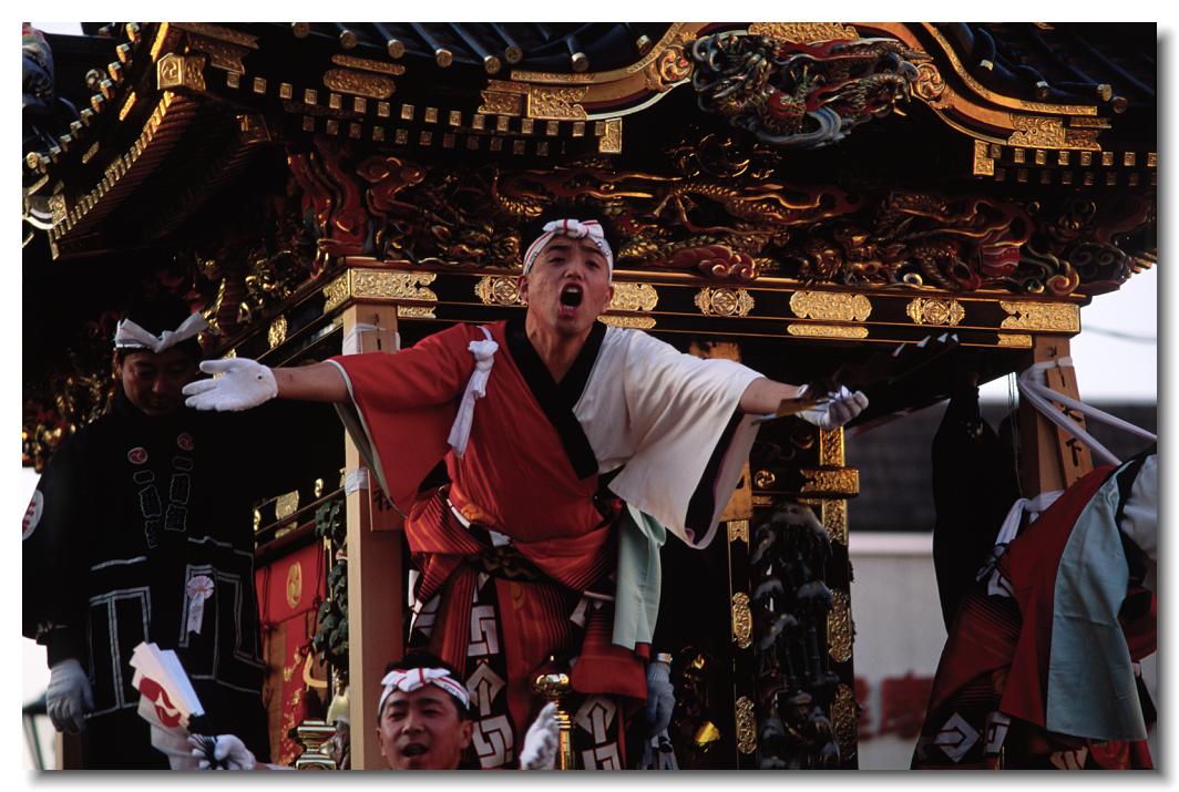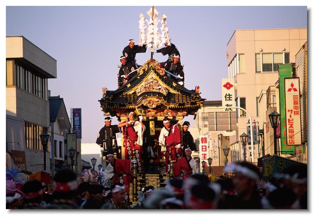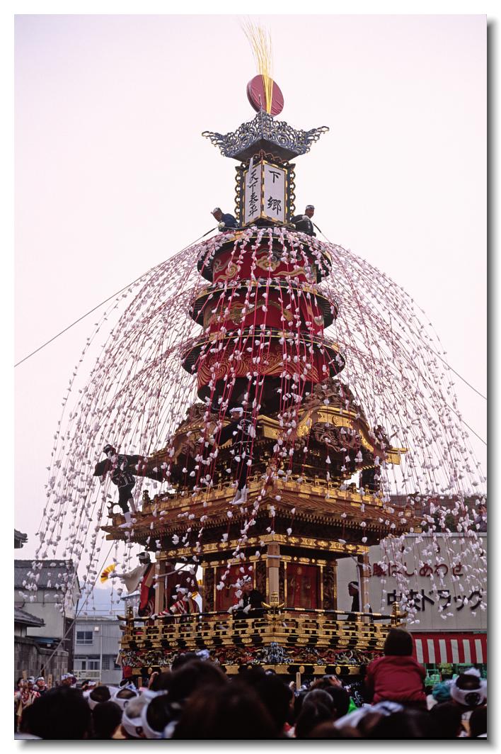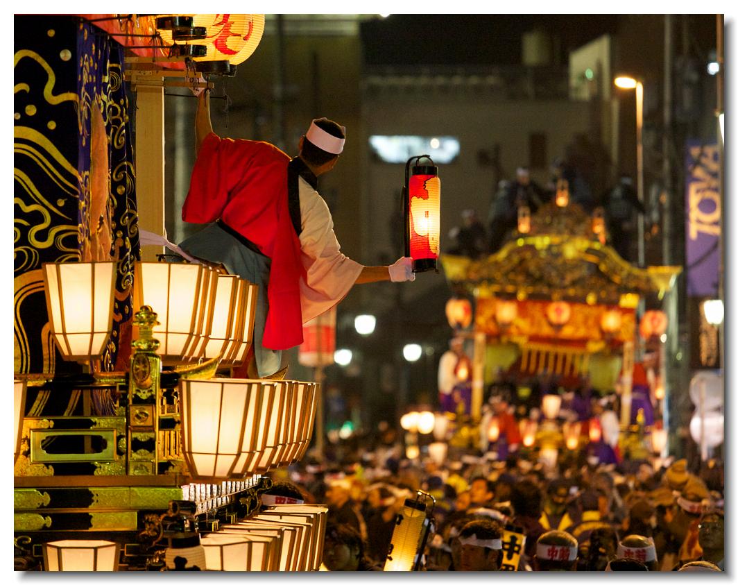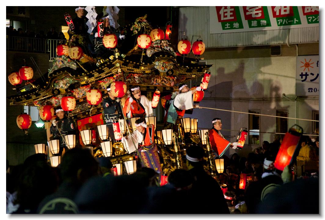 宵マチ EOS 5D 70〜200mm ※屋台の上では「曳き踊り」(国指定重要無形民俗文化財)が披露されます。日本舞踊の代表的な舞が中心です。写真は中町屋台の「藤娘」です。