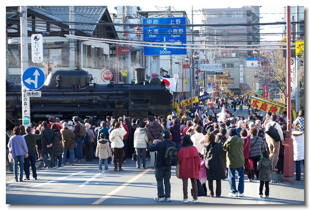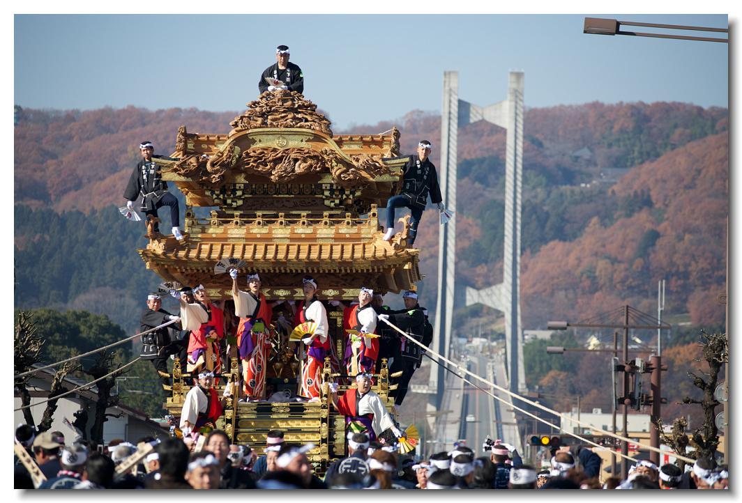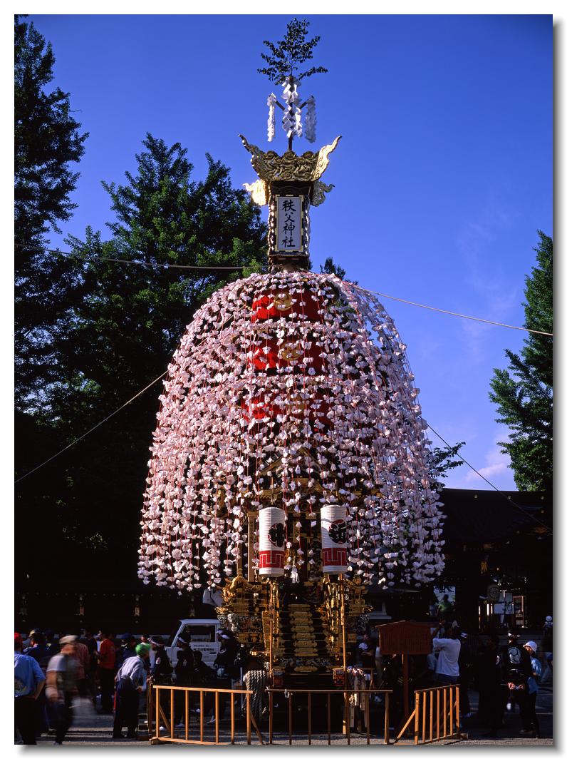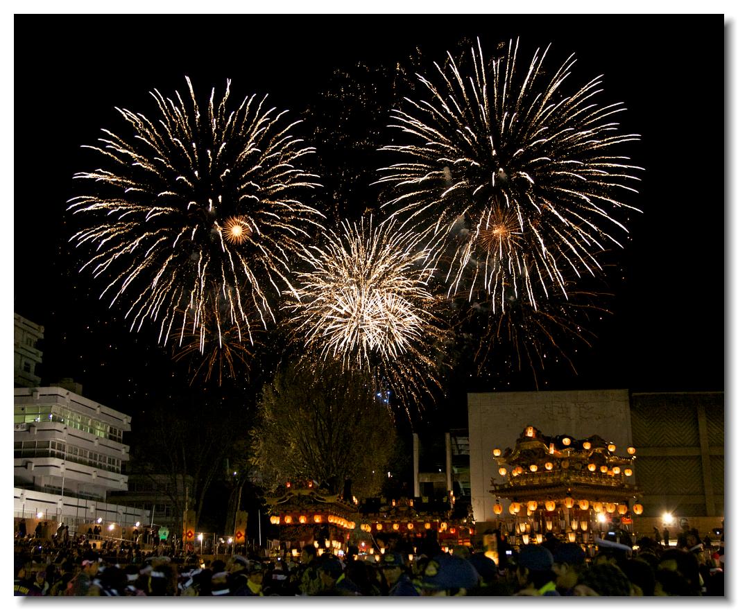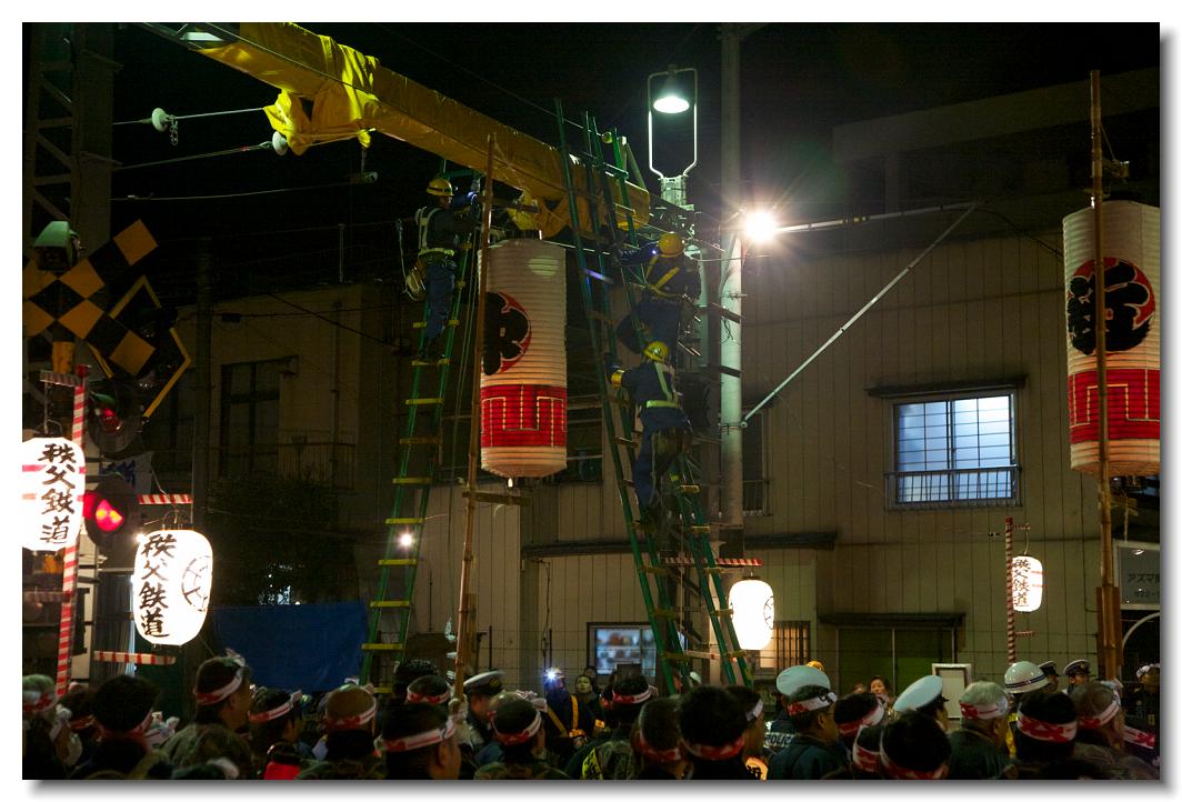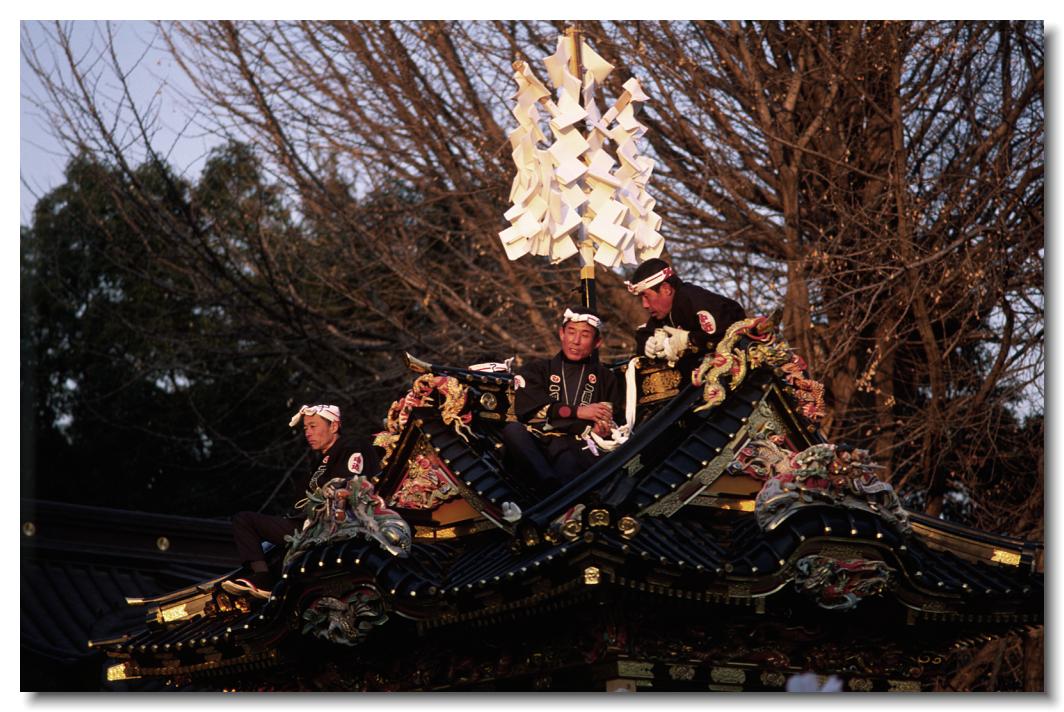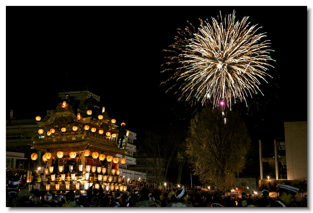 宵マチ EOS 5D Mark II 70〜200mm ※京都の祇園祭、飛騨高山祭と並び日本三大曳山祭、日本三大美祭の一つに数えられる秩父夜祭は秩父の名産品である絹の市がその始まりと言われています。江戸時代の享保年間(1716~36年)にはすでに祭が存在していたと言われています。当時秩父は江戸から見て西方に位置し、秩父札所巡りや秩父三社などの神仏巡りが盛んで、江戸の豪商たちの信仰も厚かったのでしょう。そのため、山里でありながらこれだけ豪華絢爛な山車が受け継がれてきたようです。本祭は12月3日ですが、12月2日は宵マチとして4基の屋台が曳行されます。左が本町、右が宮地の屋台です。秩父夜祭の山車は国の重要有形民俗文化財に指定されています。