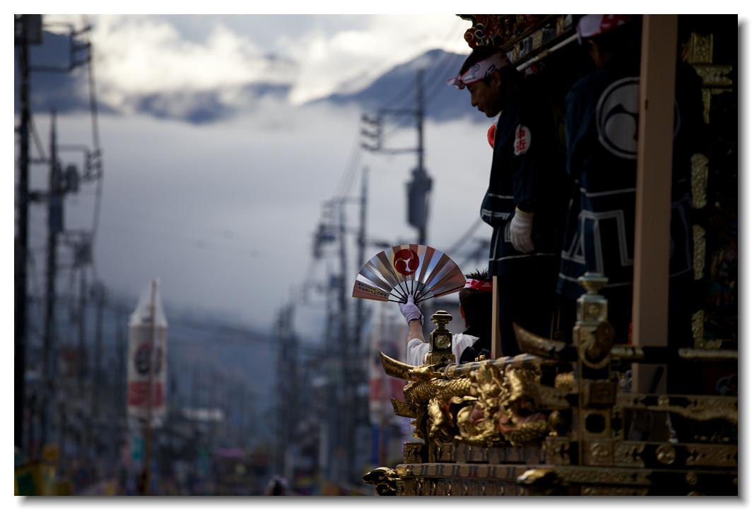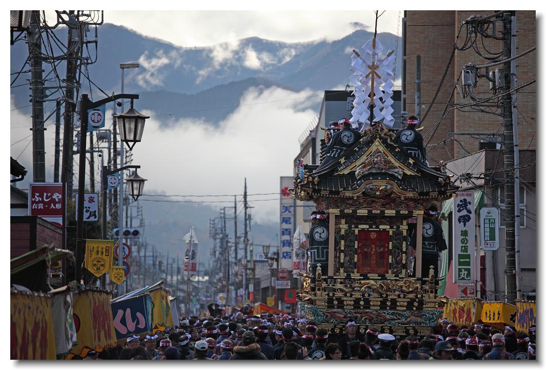 本祭 EOS 5D Mark II 70〜200mm ※朝霧巻く奥秩父の山々に向かう中近笠鉾。
